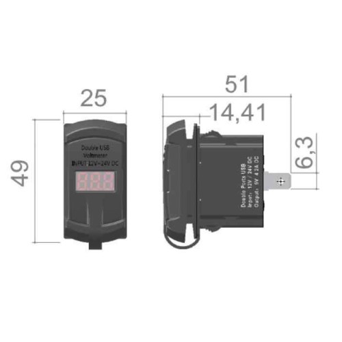 Priza marina dubla USB cu voltmetru