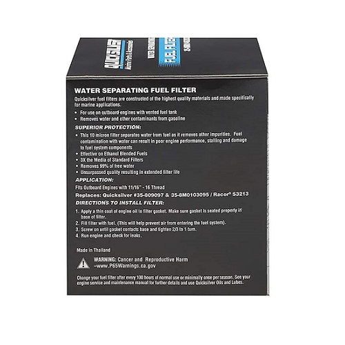 Filtrele Quicksilver sunt fabricate din materiale de inalta calitate. Acestea trebuie utilizate pe motoare outboard cu rezervor de combustibil ventilat. Separa apa si alte particule contaminante de benzina.