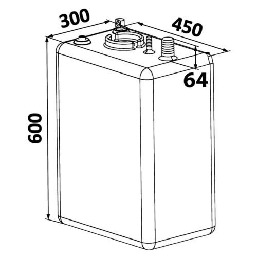 52.036.06 69L 450mm x 300mm x 600mm (+64mm) 54cm 16mm 38mm Cot de 90°, filet interior de 3/8" + pregatire pentru al 2-lea dop de robinet