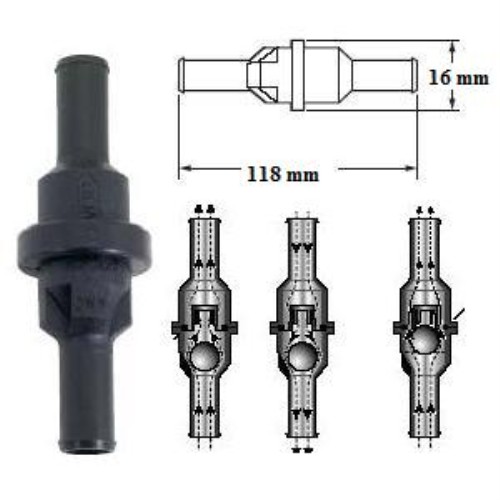 - atentioneaza cu un sunet specific atunci cand rezervorul este plin si impiedica combustibilul sa ajunga in dispozitivul de aerisire, incetineste alimentarea cand rezervorul s-a umplut, montaj 45-90 grade vertical. Atentie: supapa nu blocheaza total pentru ca in aceasta situatie ar impiedica eliminarea vaporilor !